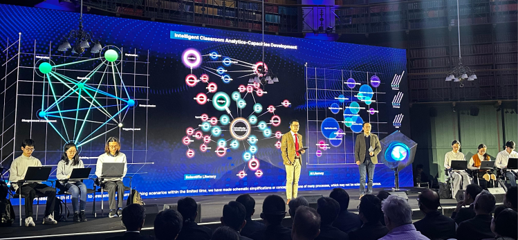 展示环节还着力打造与彰显了课堂教学过程中,师、生、机之间的多向交互链条。学生、人类教师与AI教师的多向交互体现了主创团队对“师-生-机”三元关系这一开放命题的探索与思考。
